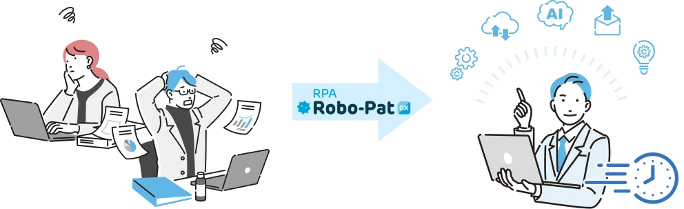 ロボパットはプログラミング知識のない現場スタッフのために開発されたRPAです。