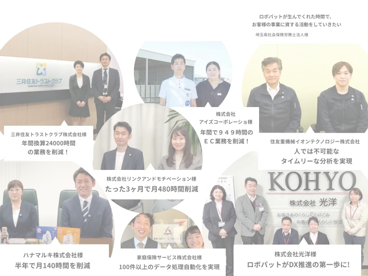 ロボパットは、ツール自体の使いやすさに加え、目標達成に向けた伴走型のコンサルティングで、全社での業務改善を実現します。