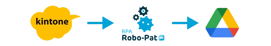 各部署や担当者から送られてくるExcelファイルをロボパットDXが必要なセルを読み取ってkintoneへ自動登録することで入力ミスと工数を削減します。