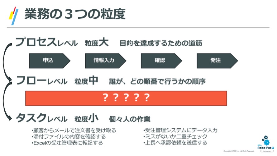 業務の整理には、大きく分けて3つの粒度があります。