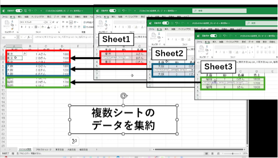 ④「VSTACK関数」で複数シートを合体