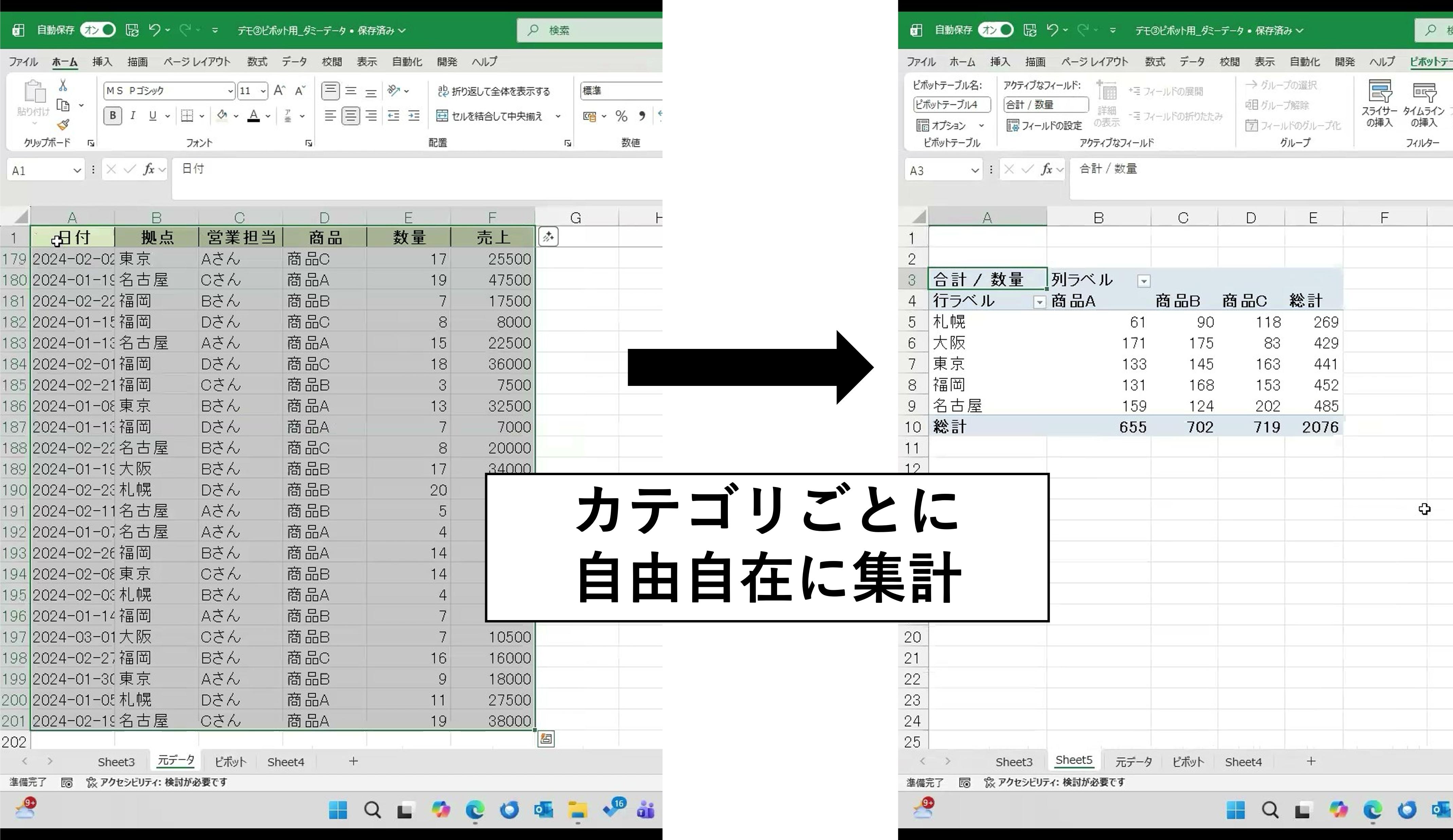 ③「ピボットテーブル」でカテゴリ集計