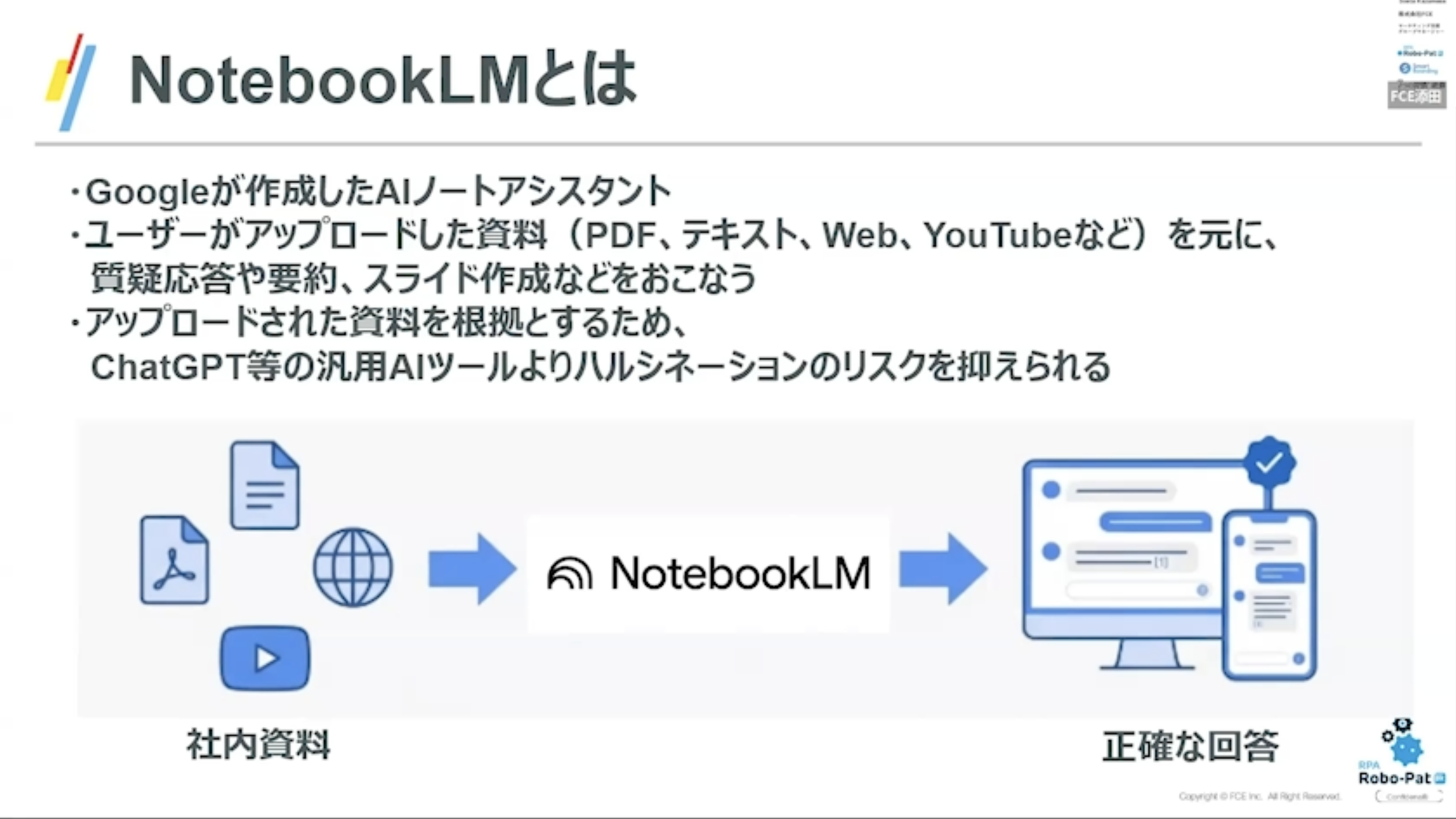 - 当社はNotebookLMの技術サポート、トラブル対応を行うことはできません