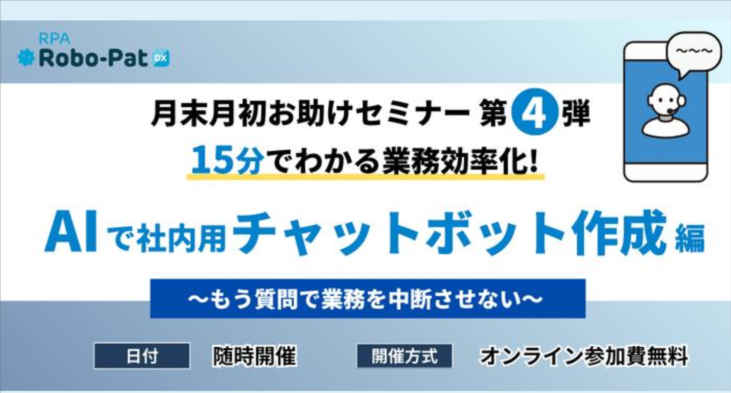 本記事では、RPAのセミナー内容をもとに、Googleの無料AIとRPAを組み合わせて「社内専用チャットボット」を作成し、運用を自動化する方法を解説します。プログラミング知識は一切不要です。