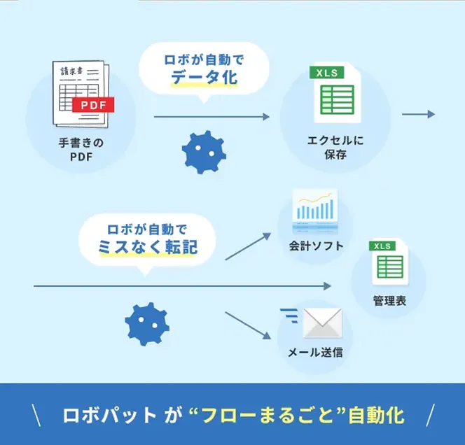 普段の作業をなぞるだけで、ロボパットが自動的にシナリオを作成します。Excelマクロの録画のようなイメージです。
