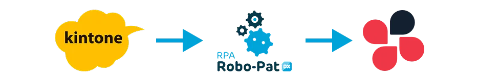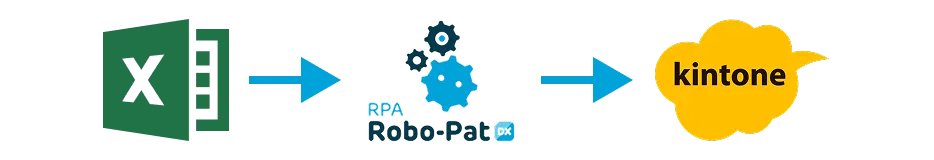 各部署や担当者から送られてくるExcelファイルをロボパットDXが必要なセルを読み取ってkintoneへ自動登録することで入力ミスと工数を削減します。